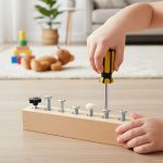 Децата се учат да използват гаечен ключ и отвертка, за да изградят увереност при реални задачи.