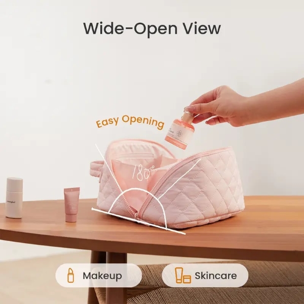 Създадена за жени, които ценят както красотата, така и удобството, тази пухкава козметична чанта побира лесно всички ежедневни грим и козметични продукти, като същевременно запазва формата и структурата си.