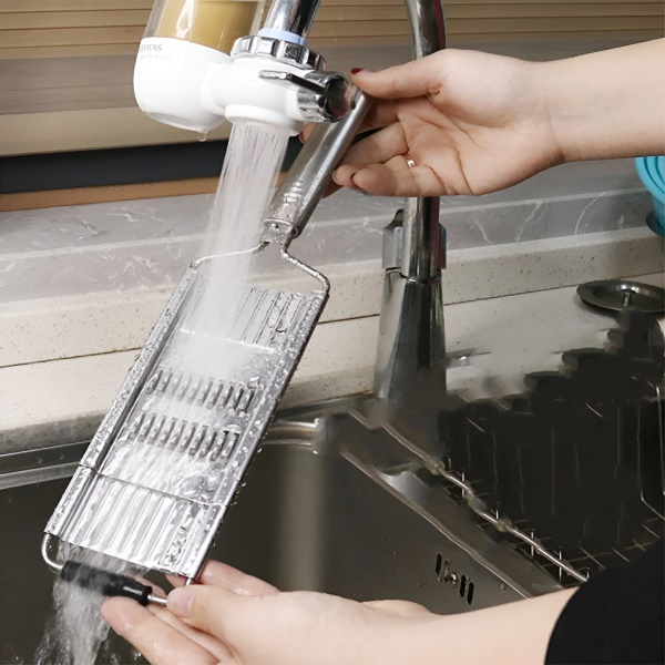 Почистването е лесно – просто извадете остриетата и ги изплакнете под течаща вода. Използвайте четка, за да отстраните всички остатъци от храна за безупречно покритие всеки път.