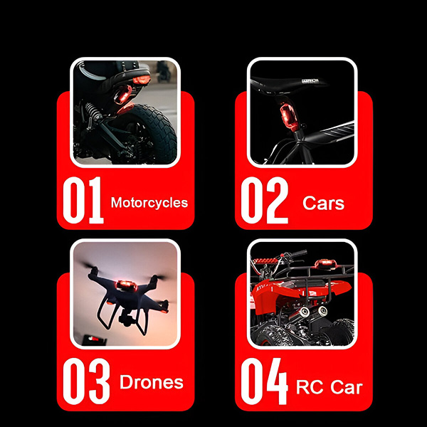 Тези светлини са невероятно универсални и са проектирани да пасват на автомобили, мотоциклети, велосипеди и дронове. Изберете между методите за монтаж с велкро и гумен пръстен за сигурна и лесна настройка. Няма нужда от сложни инструменти или професионална помощ.