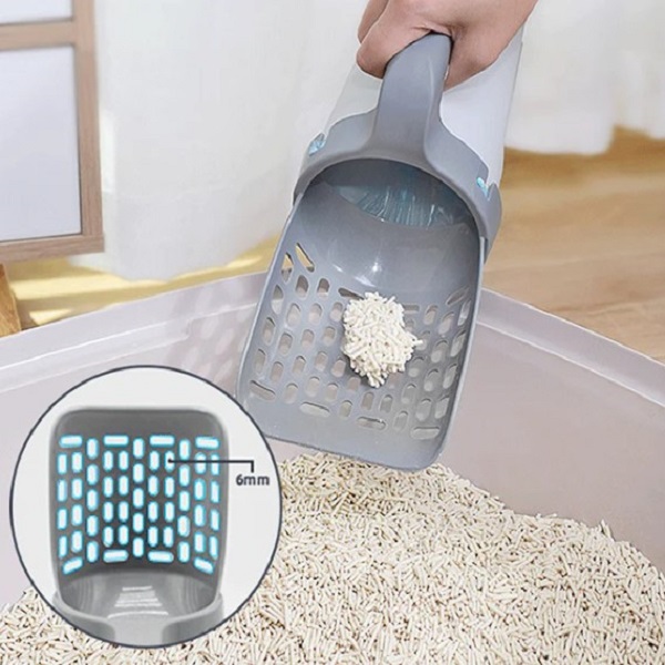 Лопатката за котешка тоалетна се предлага с контейнер, който побира торбичка за изпражнения, което я прави уникален и удобен инструмент за почистване на котешката тоалетна. След като загребете отпадъците, просто вдигнете контейнера и торбата ще улови всички фекалии, оставяйки тавата за отпадъци чиста. Изхвърлянето на отпадъци също е безпроблемно и без бъркотия.