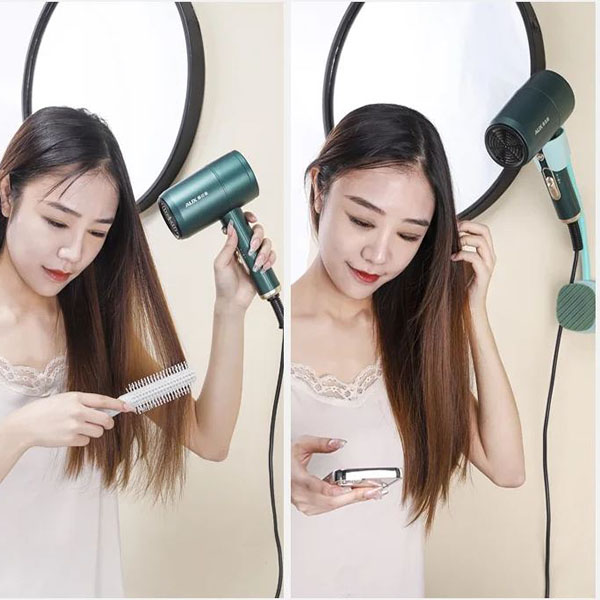 Кажете сбогом на претрупаните плотове и уморените ръце. Нашата регулируема дръжка на сешоара ви позволява да сушите и оформяте косата си със свободни ръце, осигурявайки максимален комфорт и удобство.