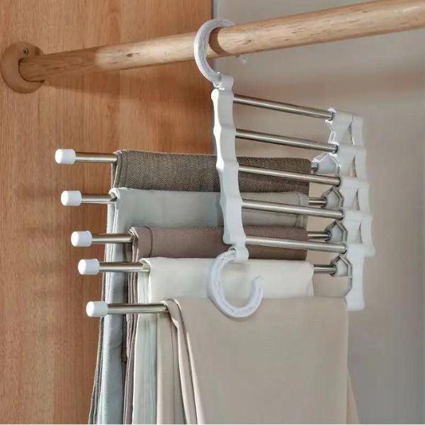 Не чакайте повече! Подобрете организацията на гардероба си и спестете място с тази изключителна 5-степенна закачалка за панталони.