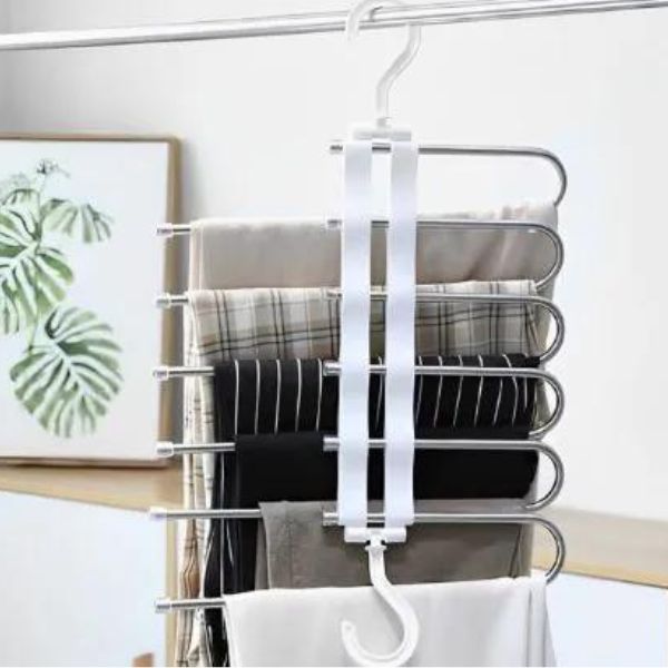 Не позволявайте повече гардеробът ви да се превръща в лабиринт от дрехи! С нашата многофункционална закачалка ще създадете място за всичките си панталони, поли и др. на пет нива. Всяка дреха ще има своето място, така че винаги ще знаете къде да намерите правилната дреха за правилния случай.