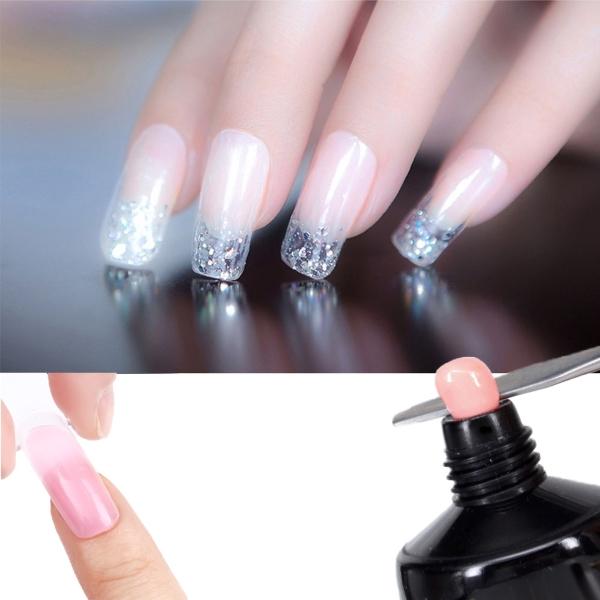 Под изкуствения нокът нанесете тънък слой poly gel, който ще прилепите след това на своя нокът. Просто отлепете изкуствения нокът, след като се изсуши под LED лампата.
